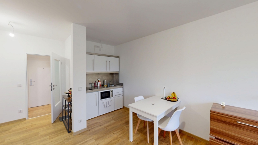 Dieses gepflegte 1-Zimmer-Appartement am Rektoratsweg im Münsteraner Norden überzeugt durch eine durchdachte Raumaufteilung auf kompakter Fläche. Dank der großzügigen Fensterfront präsentiert sich der Wohn- und Schlafbereich in einem hellen, freundlichen Licht, während der neuwertige Vinylboden in warmer Holzoptik für ein zeitgemäßes Wohngefühl sorgt. Die separate Pantry-Küche fügt sich funktional in das Gesamtkonzept ein und bietet alles für den täglichen Bedarf. Das modern geflieste Badezimmer ist mit einer Dusche ausgestattet.